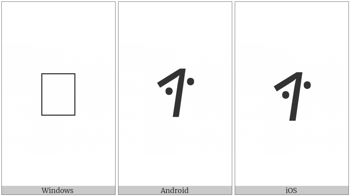 The image below shows how the “Bamum Letter Pa” symbol might look like on different operating systems. If the font in which this web site is displayed does not contain the symbol and there is no fallback font able to render it, you can use the image below to get an idea of what it should look like.