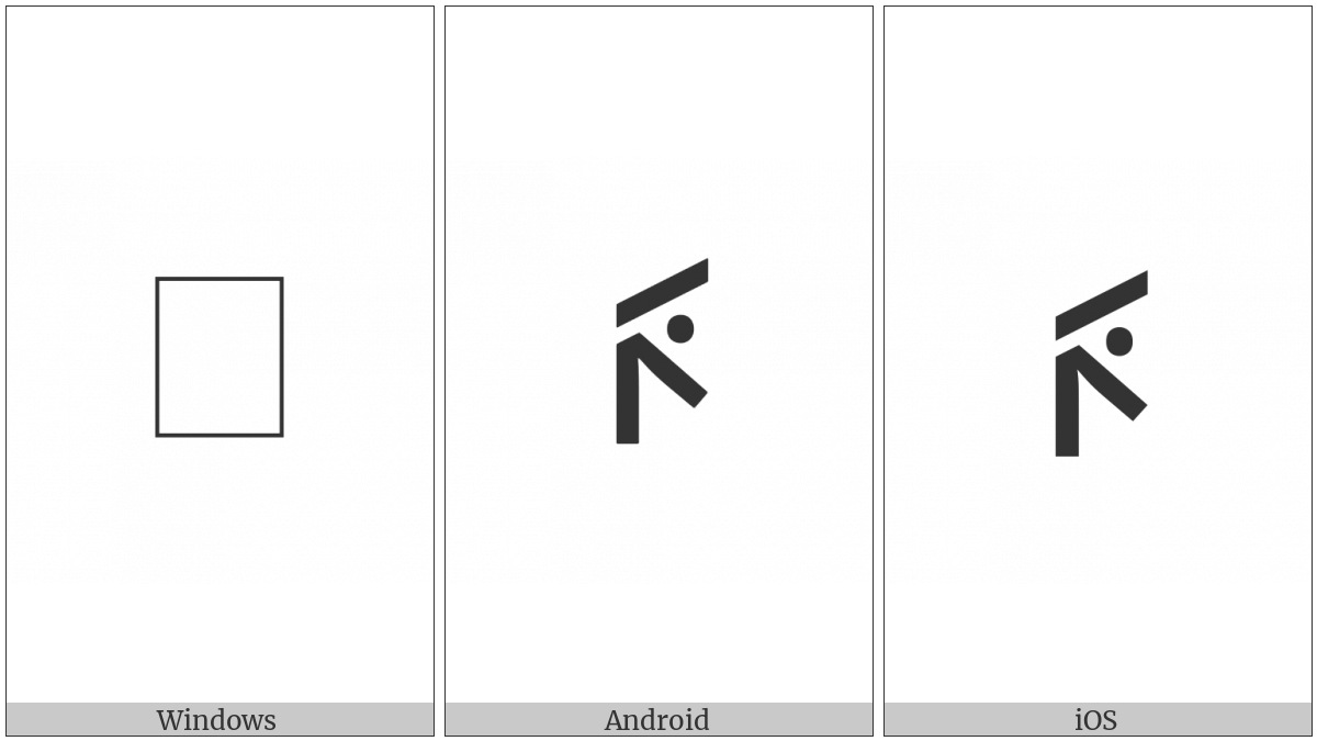 The image below shows how the “Bamum Letter Meeee” symbol might look like on different operating systems. If the font in which this web site is displayed does not contain the symbol and there is no fallback font able to render it, you can use the image below to get an idea of what it should look like.
