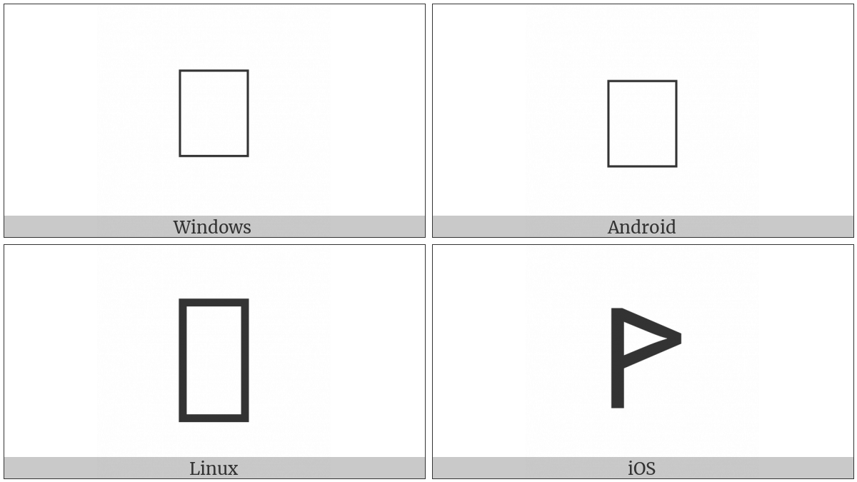 The image below shows how the “Bamum Letter Taa” symbol might look like on different operating systems. If the font in which this web site is displayed does not contain the symbol and there is no fallback font able to render it, you can use the image below to get an idea of what it should look like.