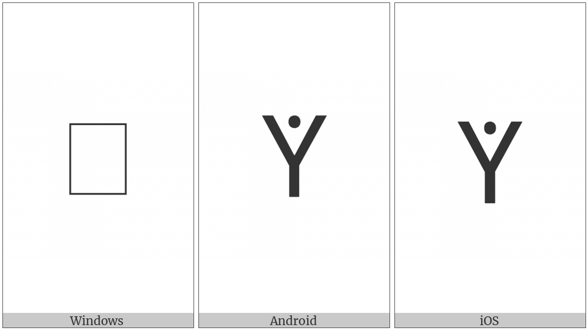 The image below shows how the “Bamum Letter Njaem” symbol might look like on different operating systems. If the font in which this web site is displayed does not contain the symbol and there is no fallback font able to render it, you can use the image below to get an idea of what it should look like.