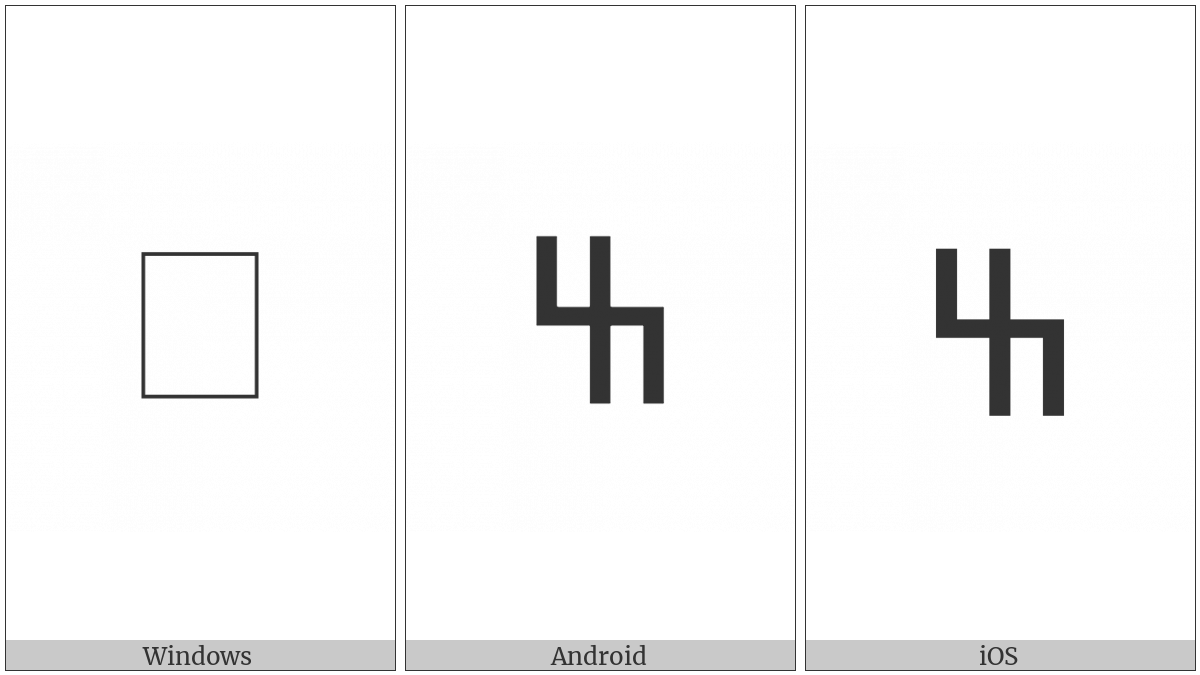 The image below shows how the “Bamum Letter Njuae” symbol might look like on different operating systems. If the font in which this web site is displayed does not contain the symbol and there is no fallback font able to render it, you can use the image below to get an idea of what it should look like.