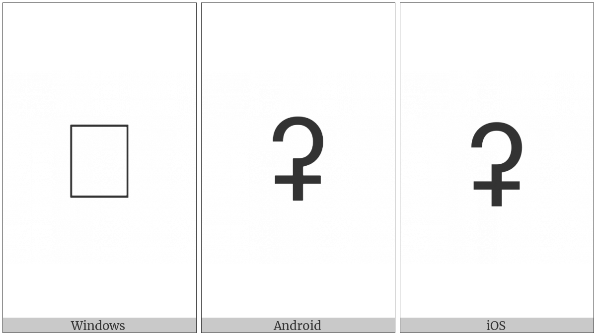 The image below shows how the “Bamum Letter Lu” symbol might look like on different operating systems. If the font in which this web site is displayed does not contain the symbol and there is no fallback font able to render it, you can use the image below to get an idea of what it should look like.