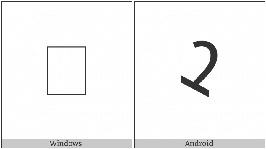 The image below shows how the “Bamum Letter Ken” symbol might look like on different operating systems. If the font in which this web site is displayed does not contain the symbol and there is no fallback font able to render it, you can use the image below to get an idea of what it should look like.