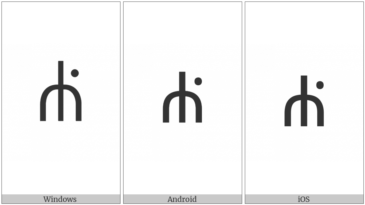 The image below shows how the “Bamum Letter Ngga” symbol might look like on different operating systems. If the font in which this web site is displayed does not contain the symbol and there is no fallback font able to render it, you can use the image below to get an idea of what it should look like.