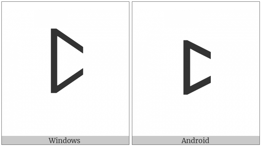 The image below shows how the “Bamum Letter Nga” symbol might look like on different operating systems. If the font in which this web site is displayed does not contain the symbol and there is no fallback font able to render it, you can use the image below to get an idea of what it should look like.