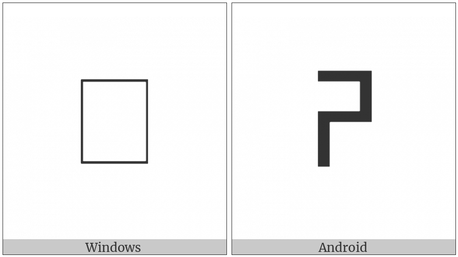 The image below shows how the “Bamum Letter Loq” symbol might look like on different operating systems. If the font in which this web site is displayed does not contain the symbol and there is no fallback font able to render it, you can use the image below to get an idea of what it should look like.
