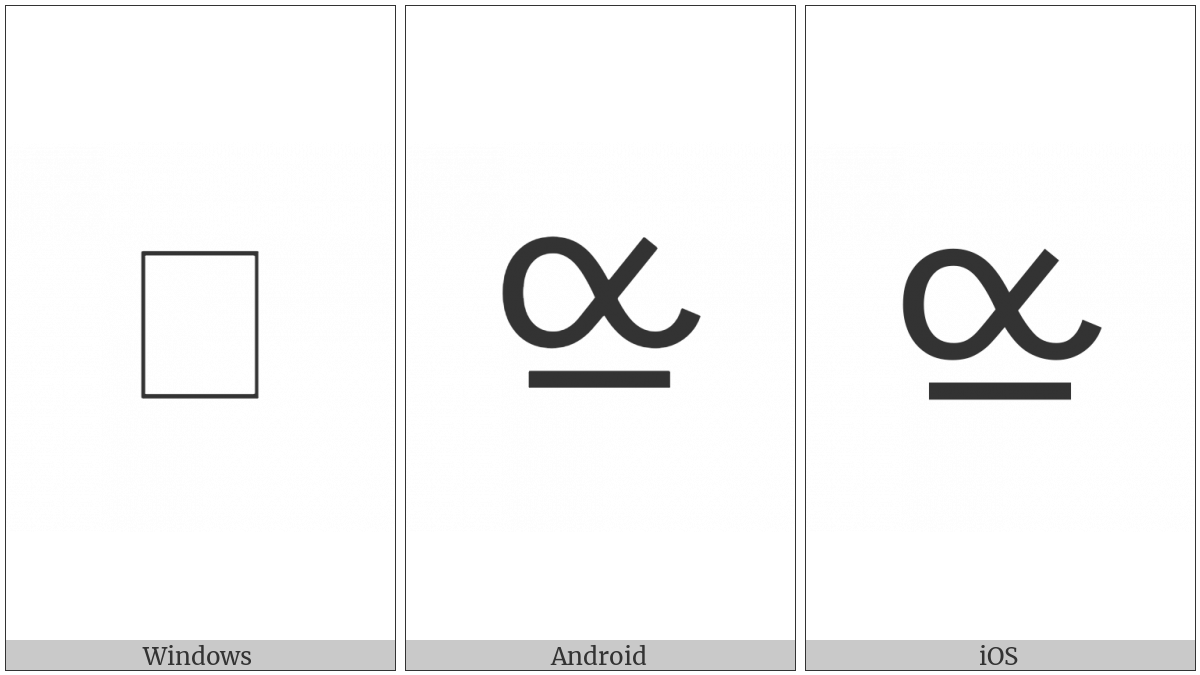 The image below shows how the “Bamum Letter Ren” symbol might look like on different operating systems. If the font in which this web site is displayed does not contain the symbol and there is no fallback font able to render it, you can use the image below to get an idea of what it should look like.