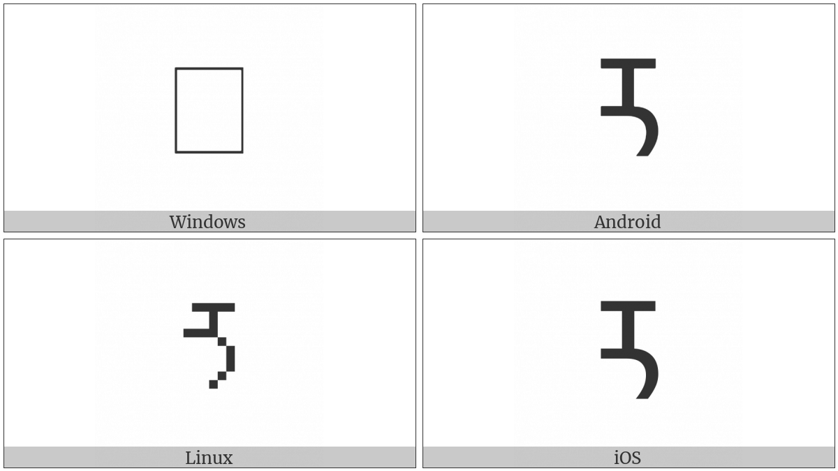 The image below shows how the “Bamum Letter Mo” symbol might look like on different operating systems. If the font in which this web site is displayed does not contain the symbol and there is no fallback font able to render it, you can use the image below to get an idea of what it should look like.