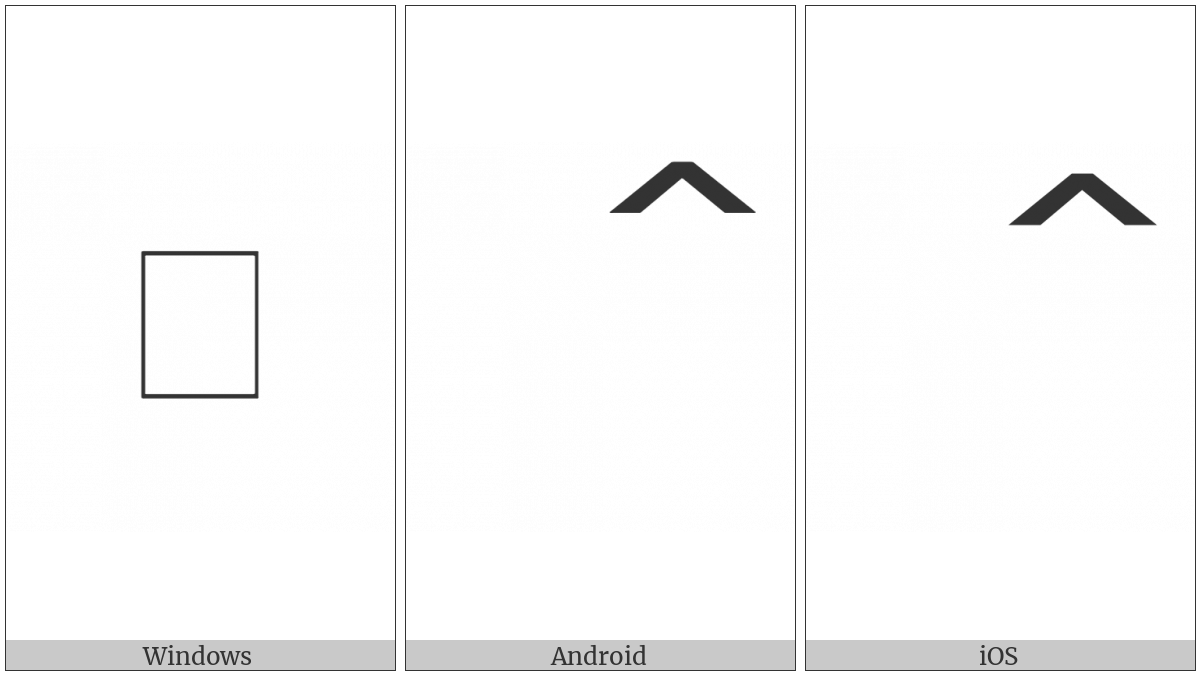 The image below shows how the “Bamum Combining Mark Koqndon” symbol might look like on different operating systems. If the font in which this web site is displayed does not contain the symbol and there is no fallback font able to render it, you can use the image below to get an idea of what it should look like.
