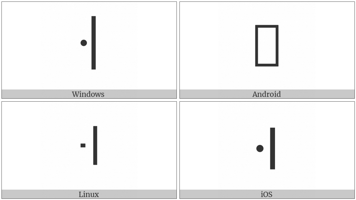 The image below shows how the “Modifier Letter Mid Dotted Tone Bar” symbol might look like on different operating systems. If the font in which this web site is displayed does not contain the symbol and there is no fallback font able to render it, you can use the image below to get an idea of what it should look like.