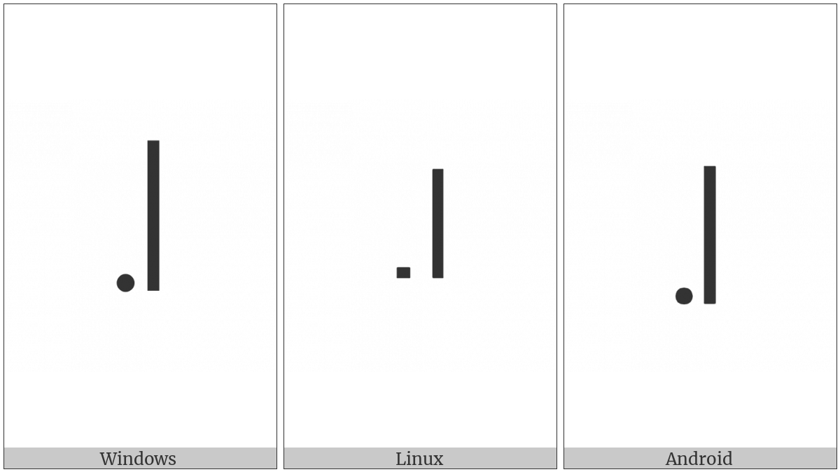 The image below shows how the “Modifier Letter Extra-Low Dotted Tone Bar” symbol might look like on different operating systems. If the font in which this web site is displayed does not contain the symbol and there is no fallback font able to render it, you can use the image below to get an idea of what it should look like.