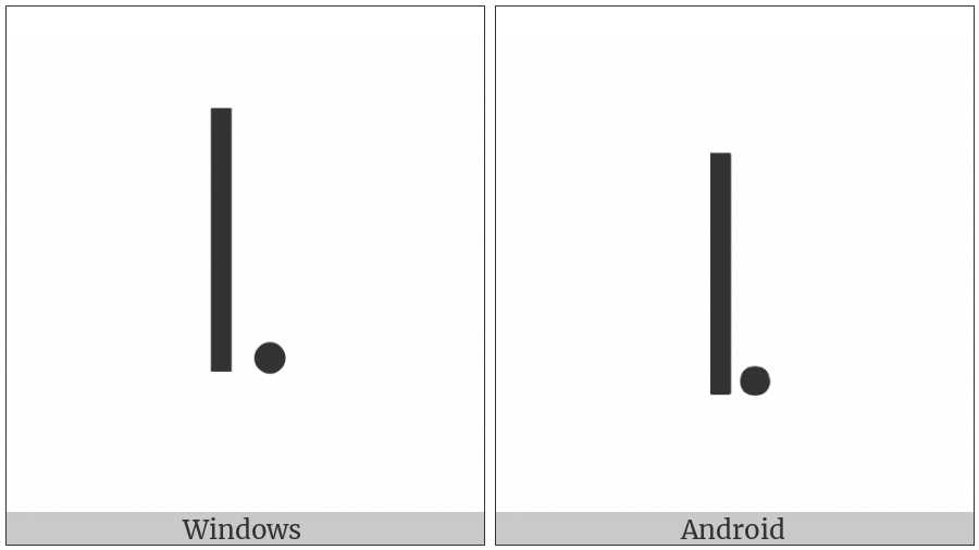 The image below shows how the “Modifier Letter Extra-Low Dotted Left-Stem Tone Bar” symbol might look like on different operating systems. If the font in which this web site is displayed does not contain the symbol and there is no fallback font able to render it, you can use the image below to get an idea of what it should look like.