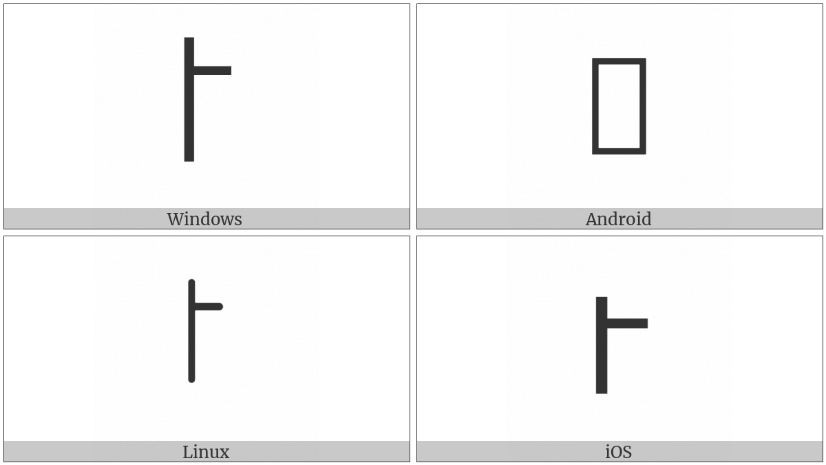 The image below shows how the “Modifier Letter High Left-Stem Tone Bar” symbol might look like on different operating systems. If the font in which this web site is displayed does not contain the symbol and there is no fallback font able to render it, you can use the image below to get an idea of what it should look like.