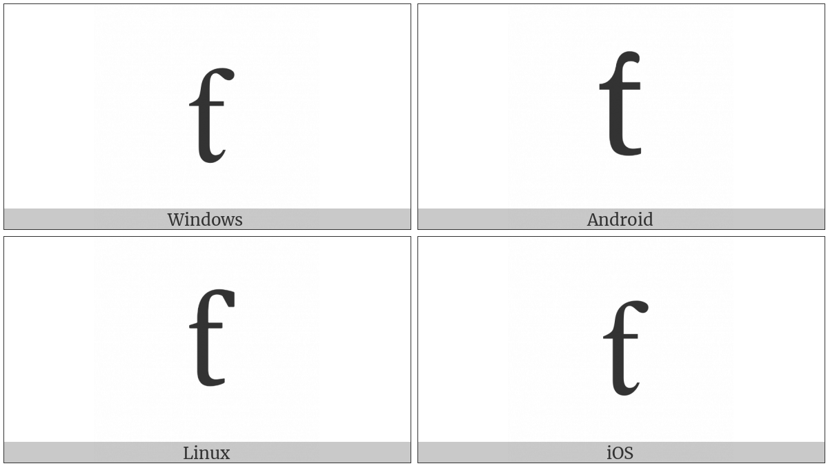 The image below shows how the “Latin Small Letter T With Hook” symbol might look like on different operating systems. If the font in which this web site is displayed does not contain the symbol and there is no fallback font able to render it, you can use the image below to get an idea of what it should look like.