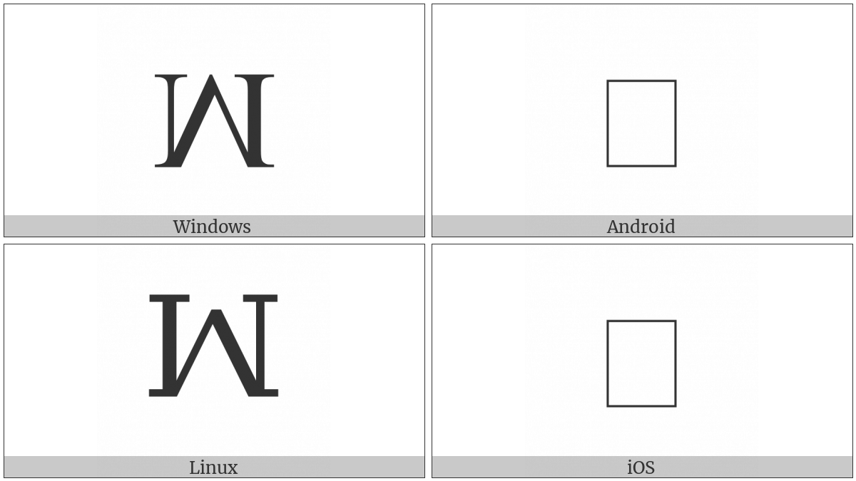 The image below shows how the “Latin Epigraphic Letter Inverted M” symbol might look like on different operating systems. If the font in which this web site is displayed does not contain the symbol and there is no fallback font able to render it, you can use the image below to get an idea of what it should look like.