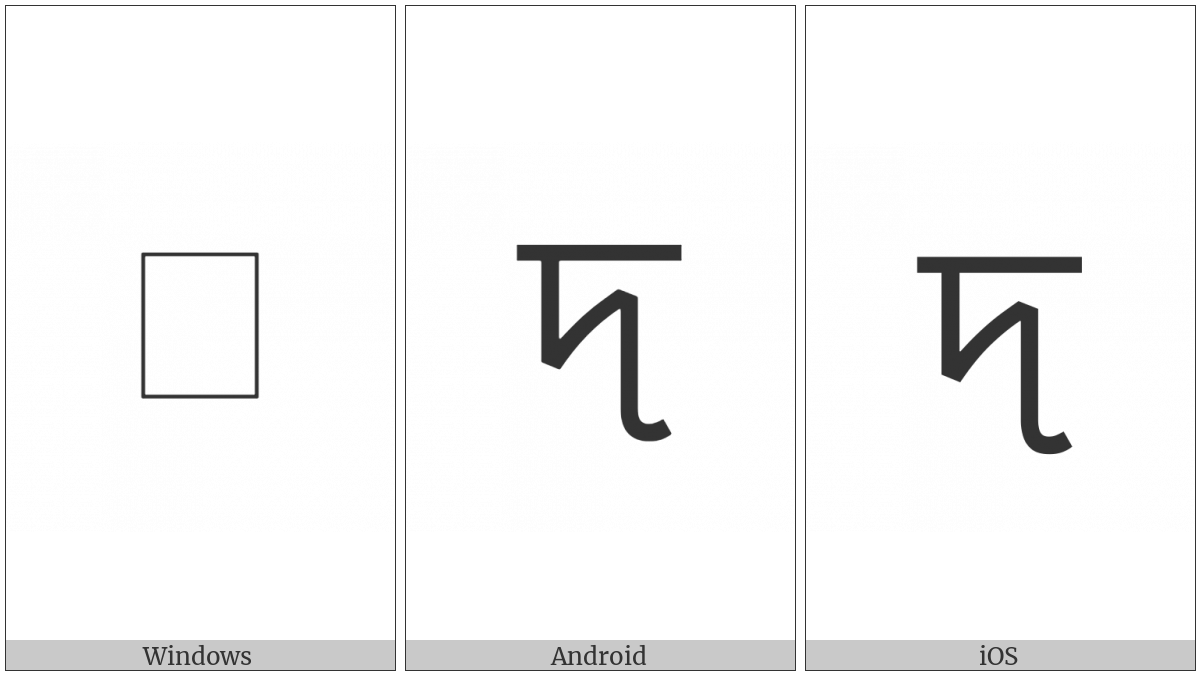The image below shows how the “Syloti Nagri Letter Do” symbol might look like on different operating systems. If the font in which this web site is displayed does not contain the symbol and there is no fallback font able to render it, you can use the image below to get an idea of what it should look like.