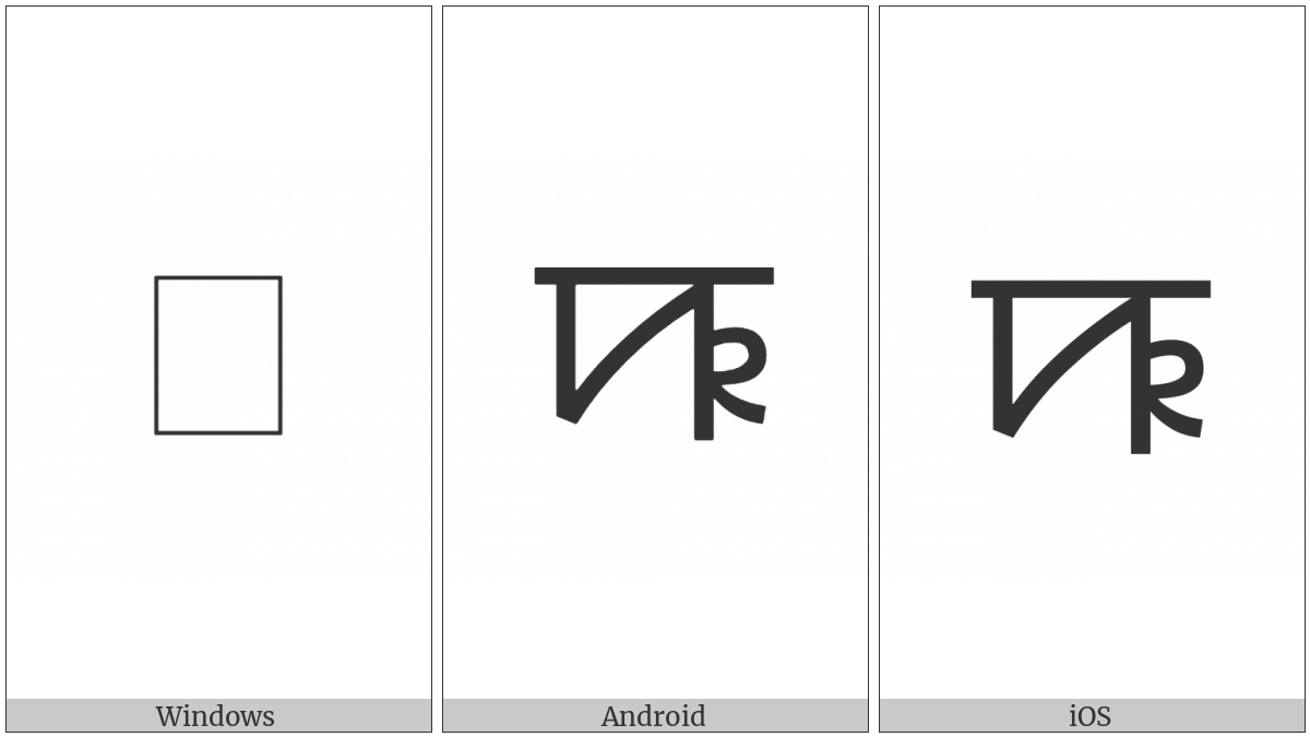 The image below shows how the “Syloti Nagri Letter Pho” symbol might look like on different operating systems. If the font in which this web site is displayed does not contain the symbol and there is no fallback font able to render it, you can use the image below to get an idea of what it should look like.