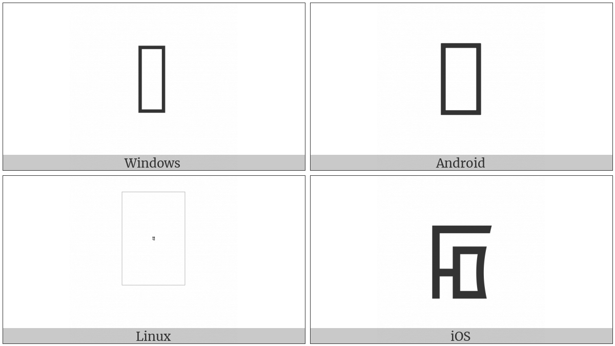 The image below shows how the “Phags-Pa Letter Ga” symbol might look like on different operating systems. If the font in which this web site is displayed does not contain the symbol and there is no fallback font able to render it, you can use the image below to get an idea of what it should look like.