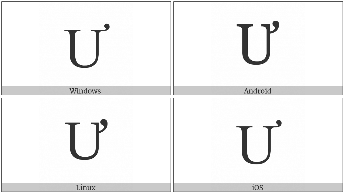 The image below shows how the “Latin Capital Letter U With Horn” symbol might look like on different operating systems. If the font in which this web site is displayed does not contain the symbol and there is no fallback font able to render it, you can use the image below to get an idea of what it should look like.