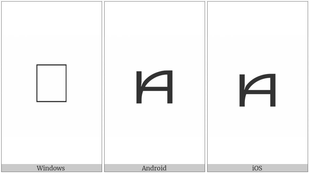 The image below shows how the “Kayah Li Letter Ga” symbol might look like on different operating systems. If the font in which this web site is displayed does not contain the symbol and there is no fallback font able to render it, you can use the image below to get an idea of what it should look like.