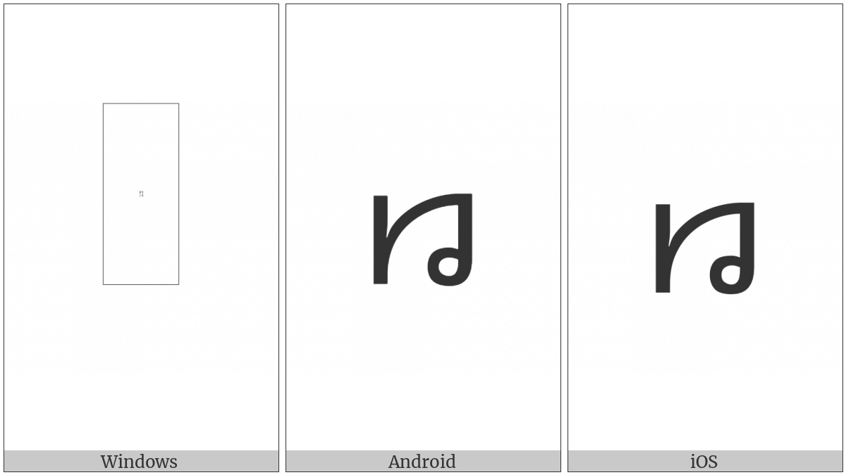 The image below shows how the “Kayah Li Letter Ba” symbol might look like on different operating systems. If the font in which this web site is displayed does not contain the symbol and there is no fallback font able to render it, you can use the image below to get an idea of what it should look like.