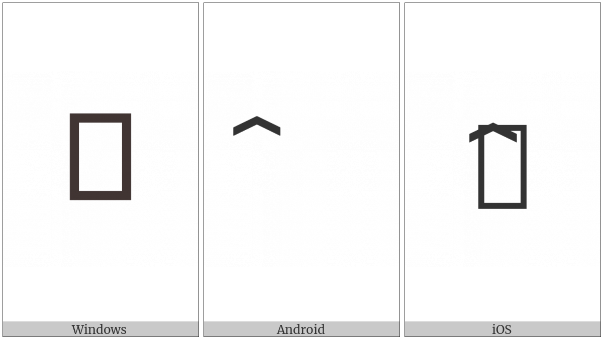 The image below shows how the “Kayah Li Vowel U” symbol might look like on different operating systems. If the font in which this web site is displayed does not contain the symbol and there is no fallback font able to render it, you can use the image below to get an idea of what it should look like.