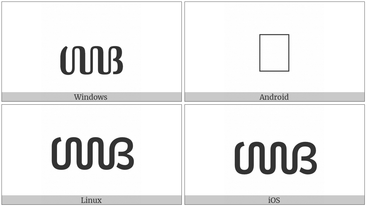 The image below shows how the “Javanese Letter Ca Murda” symbol might look like on different operating systems. If the font in which this web site is displayed does not contain the symbol and there is no fallback font able to render it, you can use the image below to get an idea of what it should look like.