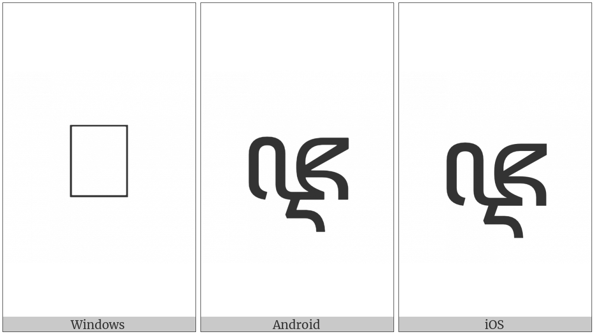 The image below shows how the “Javanese Letter Nya Murda” symbol might look like on different operating systems. If the font in which this web site is displayed does not contain the symbol and there is no fallback font able to render it, you can use the image below to get an idea of what it should look like.