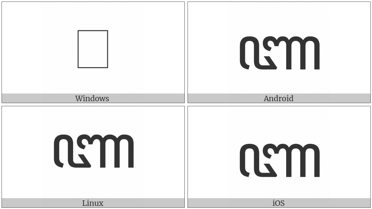 The image below shows how the “Javanese Letter Nya” symbol might look like on different operating systems. If the font in which this web site is displayed does not contain the symbol and there is no fallback font able to render it, you can use the image below to get an idea of what it should look like.