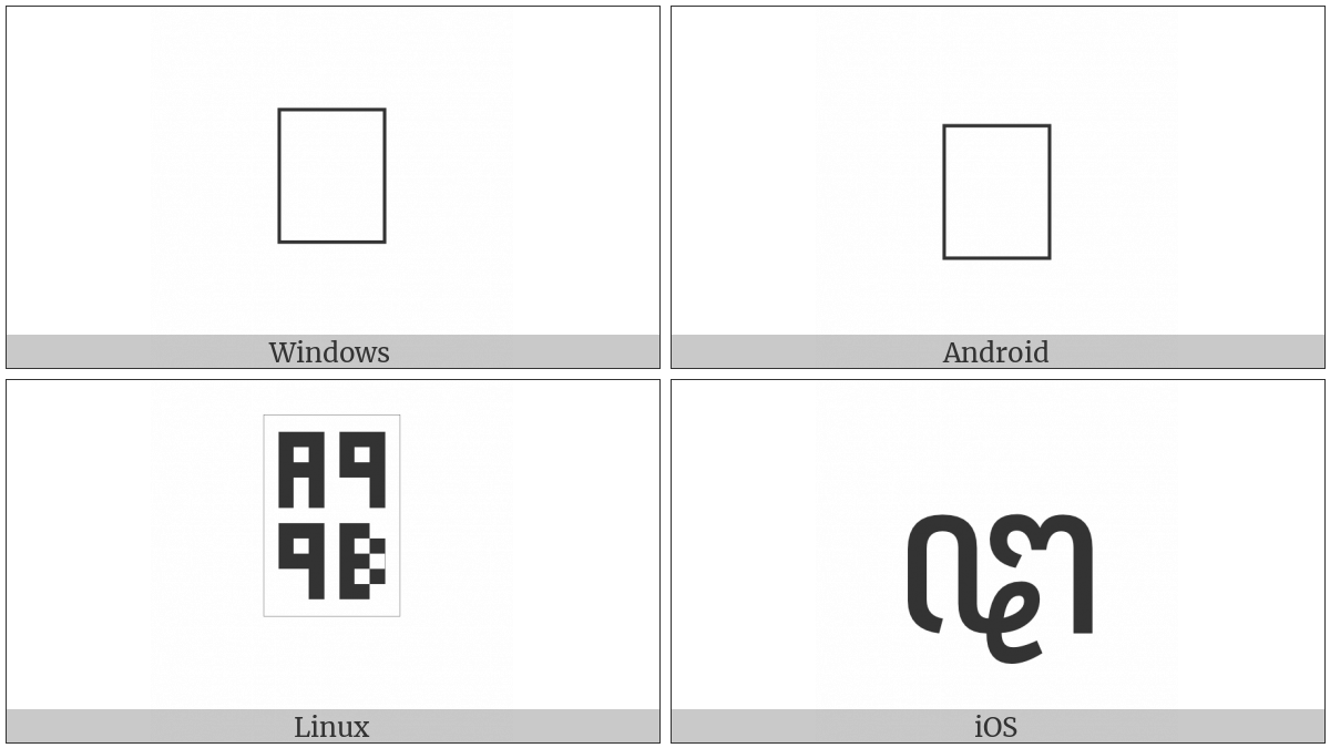 The image below shows how the “Javanese Letter Tta” symbol might look like on different operating systems. If the font in which this web site is displayed does not contain the symbol and there is no fallback font able to render it, you can use the image below to get an idea of what it should look like.