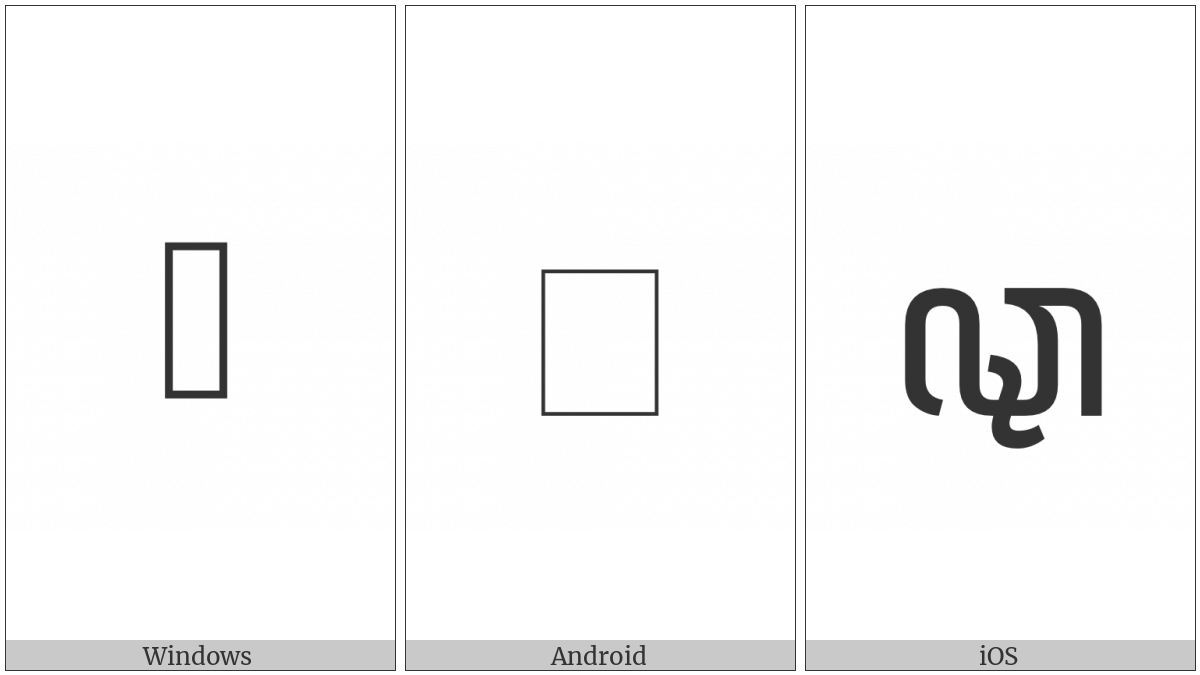 The image below shows how the “Javanese Letter Ta Murda” symbol might look like on different operating systems. If the font in which this web site is displayed does not contain the symbol and there is no fallback font able to render it, you can use the image below to get an idea of what it should look like.