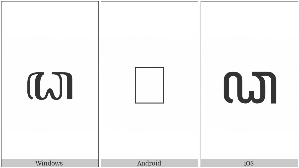 The image below shows how the “Javanese Letter Da Mahaprana” symbol might look like on different operating systems. If the font in which this web site is displayed does not contain the symbol and there is no fallback font able to render it, you can use the image below to get an idea of what it should look like.
