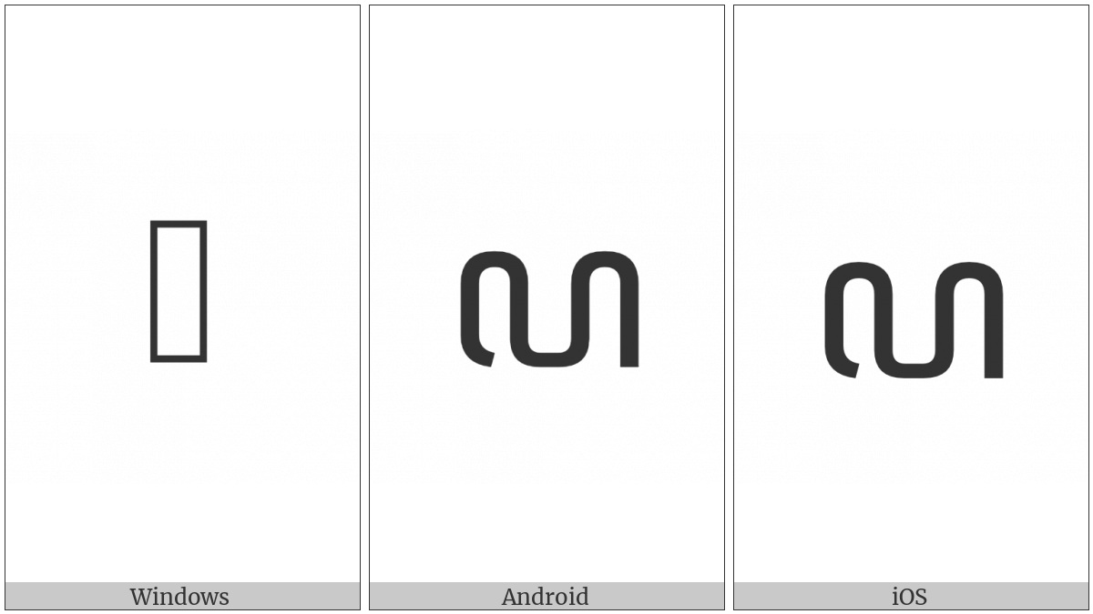 The image below shows how the “Javanese Letter Pa” symbol might look like on different operating systems. If the font in which this web site is displayed does not contain the symbol and there is no fallback font able to render it, you can use the image below to get an idea of what it should look like.