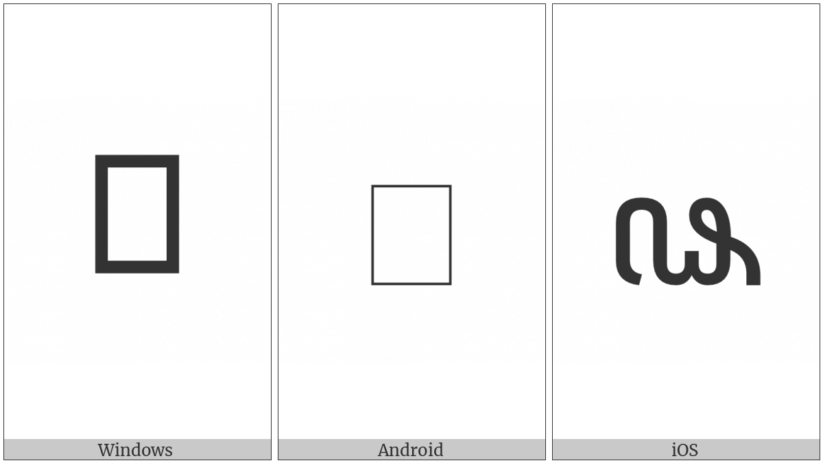 The image below shows how the “Javanese Letter Pa Murda” symbol might look like on different operating systems. If the font in which this web site is displayed does not contain the symbol and there is no fallback font able to render it, you can use the image below to get an idea of what it should look like.