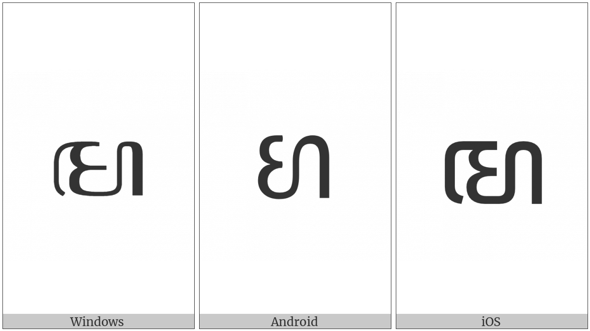 The image below shows how the “Javanese Letter Ma” symbol might look like on different operating systems. If the font in which this web site is displayed does not contain the symbol and there is no fallback font able to render it, you can use the image below to get an idea of what it should look like.