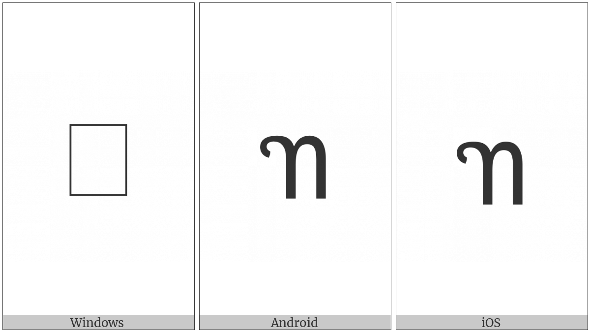 The image below shows how the “Javanese Letter Ra” symbol might look like on different operating systems. If the font in which this web site is displayed does not contain the symbol and there is no fallback font able to render it, you can use the image below to get an idea of what it should look like.