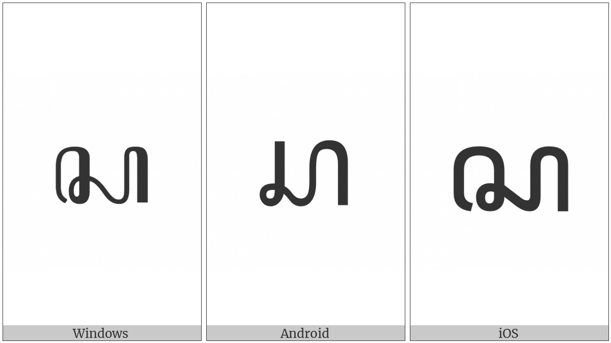 The image below shows how the “Javanese Letter Sa” symbol might look like on different operating systems. If the font in which this web site is displayed does not contain the symbol and there is no fallback font able to render it, you can use the image below to get an idea of what it should look like.