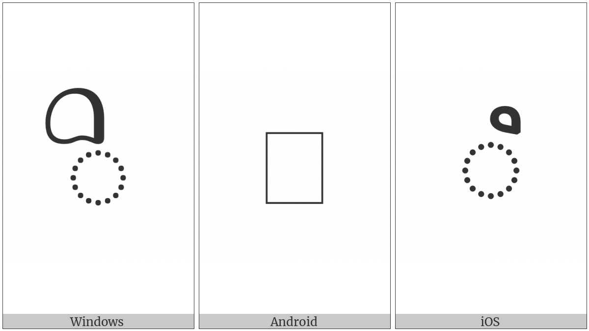 The image below shows how the “Javanese Vowel Sign Wulu” symbol might look like on different operating systems. If the font in which this web site is displayed does not contain the symbol and there is no fallback font able to render it, you can use the image below to get an idea of what it should look like.