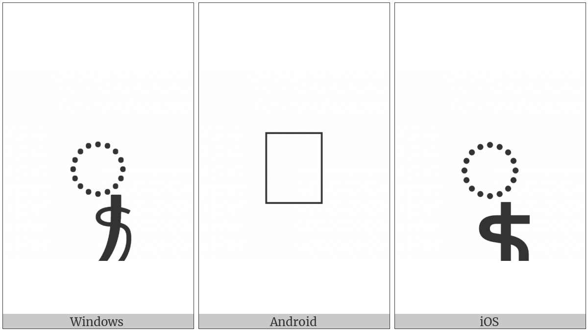 The image below shows how the “Javanese Vowel Sign Suku Mendut” symbol might look like on different operating systems. If the font in which this web site is displayed does not contain the symbol and there is no fallback font able to render it, you can use the image below to get an idea of what it should look like.