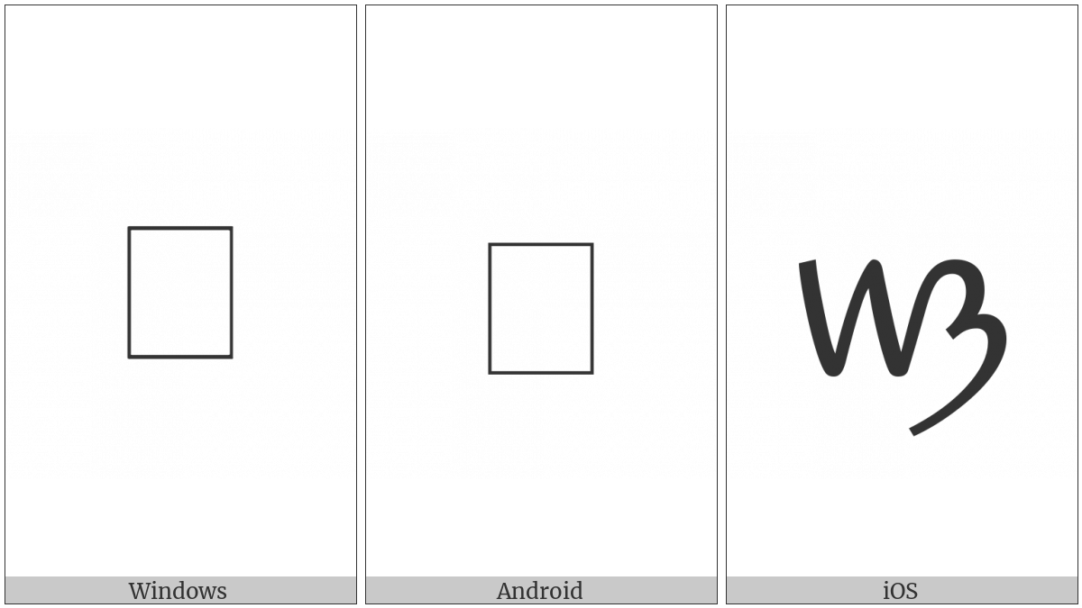 The image below shows how the “Tai Viet Letter High Kho” symbol might look like on different operating systems. If the font in which this web site is displayed does not contain the symbol and there is no fallback font able to render it, you can use the image below to get an idea of what it should look like.