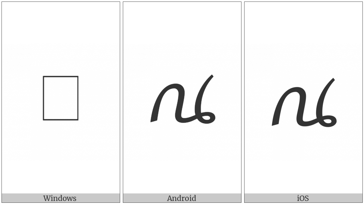 The image below shows how the “Tai Viet Letter Low Khho” symbol might look like on different operating systems. If the font in which this web site is displayed does not contain the symbol and there is no fallback font able to render it, you can use the image below to get an idea of what it should look like.