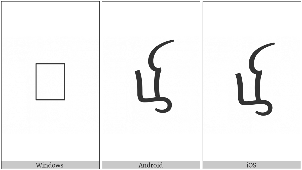 The image below shows how the “Tai Viet Letter High Cho” symbol might look like on different operating systems. If the font in which this web site is displayed does not contain the symbol and there is no fallback font able to render it, you can use the image below to get an idea of what it should look like.