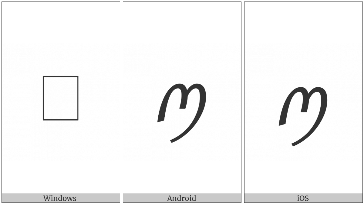 The image below shows how the “Tai Viet Letter High Nyo” symbol might look like on different operating systems. If the font in which this web site is displayed does not contain the symbol and there is no fallback font able to render it, you can use the image below to get an idea of what it should look like.