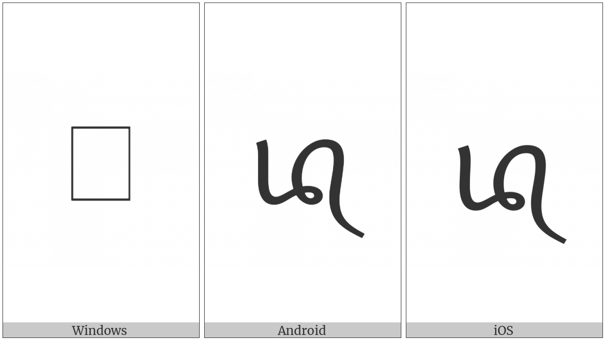 The image below shows how the “Tai Viet Letter High Do” symbol might look like on different operating systems. If the font in which this web site is displayed does not contain the symbol and there is no fallback font able to render it, you can use the image below to get an idea of what it should look like.