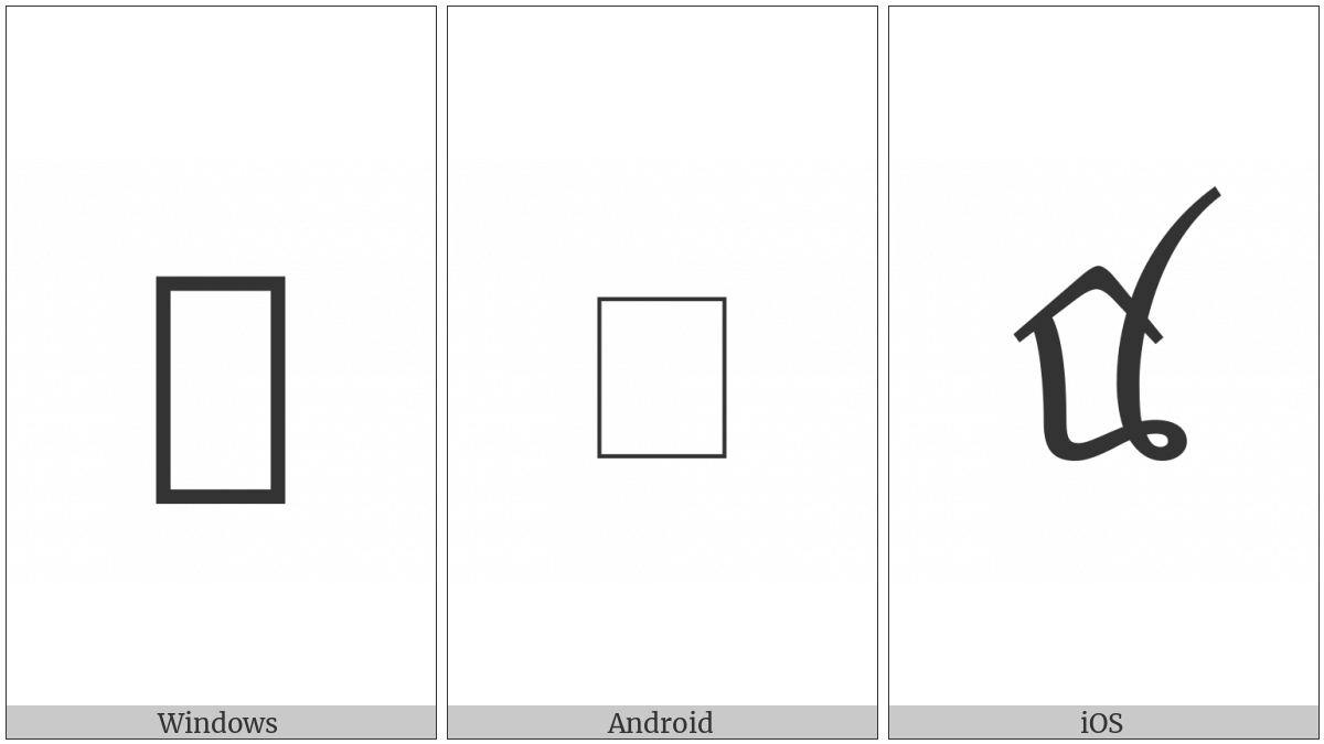 The image below shows how the “Tai Viet Letter Low Fo” symbol might look like on different operating systems. If the font in which this web site is displayed does not contain the symbol and there is no fallback font able to render it, you can use the image below to get an idea of what it should look like.