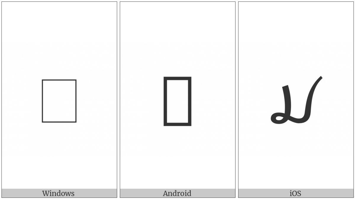 The image below shows how the “Tai Viet Letter High Mo” symbol might look like on different operating systems. If the font in which this web site is displayed does not contain the symbol and there is no fallback font able to render it, you can use the image below to get an idea of what it should look like.