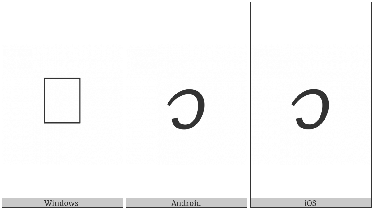 The image below shows how the “Tai Viet Letter High Vo” symbol might look like on different operating systems. If the font in which this web site is displayed does not contain the symbol and there is no fallback font able to render it, you can use the image below to get an idea of what it should look like.