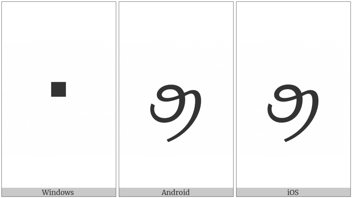 The image below shows how the “Tai Viet Letter High O” symbol might look like on different operating systems. If the font in which this web site is displayed does not contain the symbol and there is no fallback font able to render it, you can use the image below to get an idea of what it should look like.