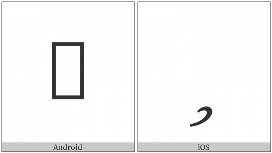 The image below shows how the “Tai Viet Vowel U” symbol might look like on different operating systems. If the font in which this web site is displayed does not contain the symbol and there is no fallback font able to render it, you can use the image below to get an idea of what it should look like.