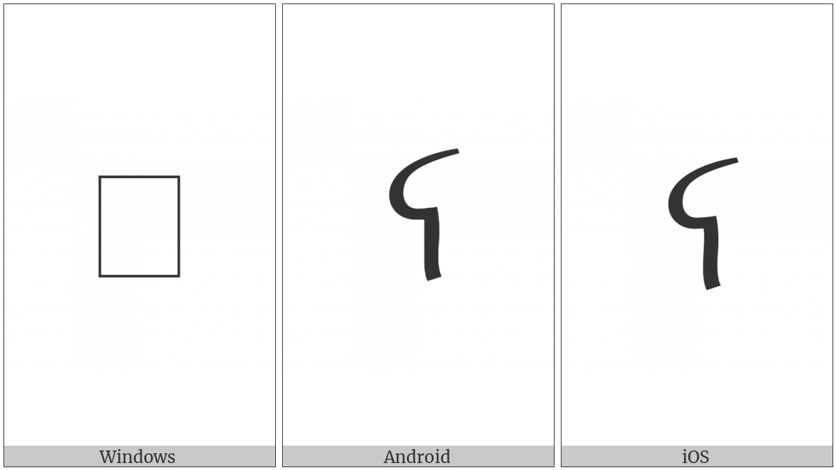 The image below shows how the “Tai Viet Vowel Ua” symbol might look like on different operating systems. If the font in which this web site is displayed does not contain the symbol and there is no fallback font able to render it, you can use the image below to get an idea of what it should look like.